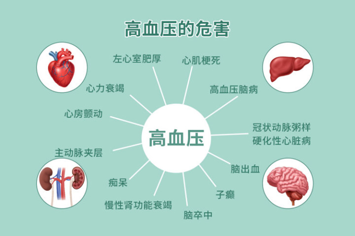 这种损害是全身性的、不可逆的,上海交通大学医学院附属瑞金医院高血压科主任王继光表示,高血压不及时控制会出现一系列的并发症。如会导致眼底出血,让视力受损;引起中风、心梗,或是心源性猝死等严重疾病发生。