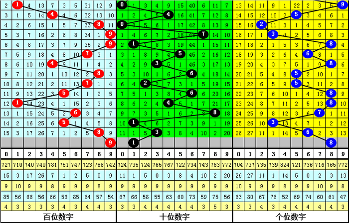 上期第二位奖号为:3,间隔6期之后开出,走势较温,前10期该位热码开出次数较少,本期注意该位热码逐渐回暖,关注号码1。