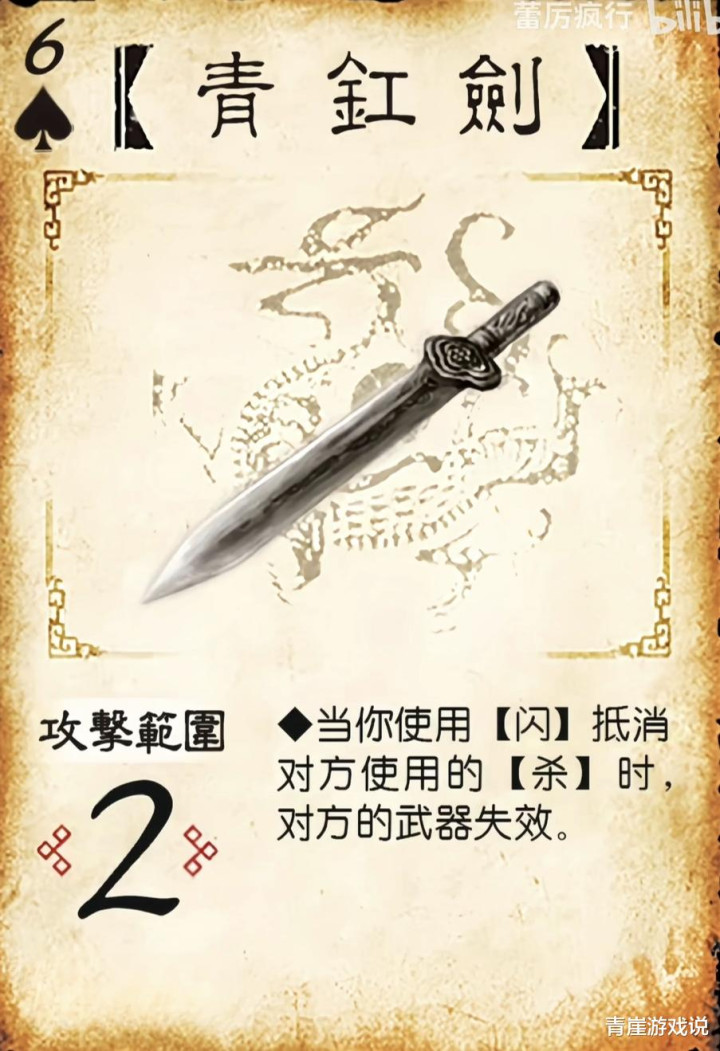 青釭剑的防御效果是出闪后对方武器牌失效。简单易懂,这技能针对的是武器牌有后续效果,比如诸葛连弩、贯石斧,在青釭剑面前直接哑火。实在是控制能力拉满的。