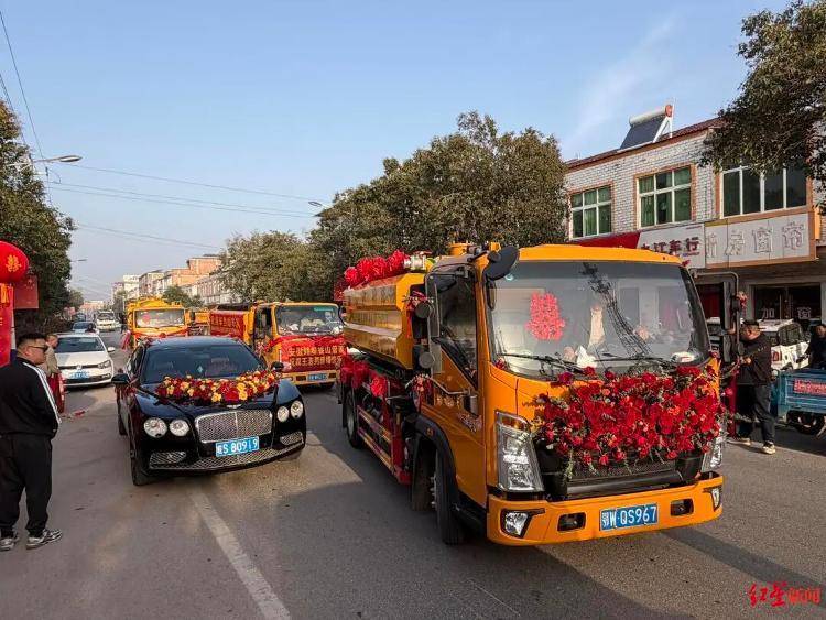 “这肯定是头一次见啊,之前哪见过这种,我觉得还挺好。”在路边卖早餐胡辣汤的朱先生说,当天一早路过摊子门前的迎亲车队不少,但是唯一吸引他掏出手机录视频的,也只有这几台作为迎亲车的粪便清运车。